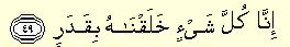 “İnna kulle şey'in halaknahu bi kader: Biz, her şeyi bir ölçüye göre yarattık.” (Kamer 54/49)