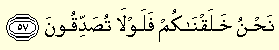 “Nahnu halaknakum felevla tusaddikune. : Sizi biz yarattık. Tasdik etmeniz gerekmez mi?” (Vâkıa 56/57)